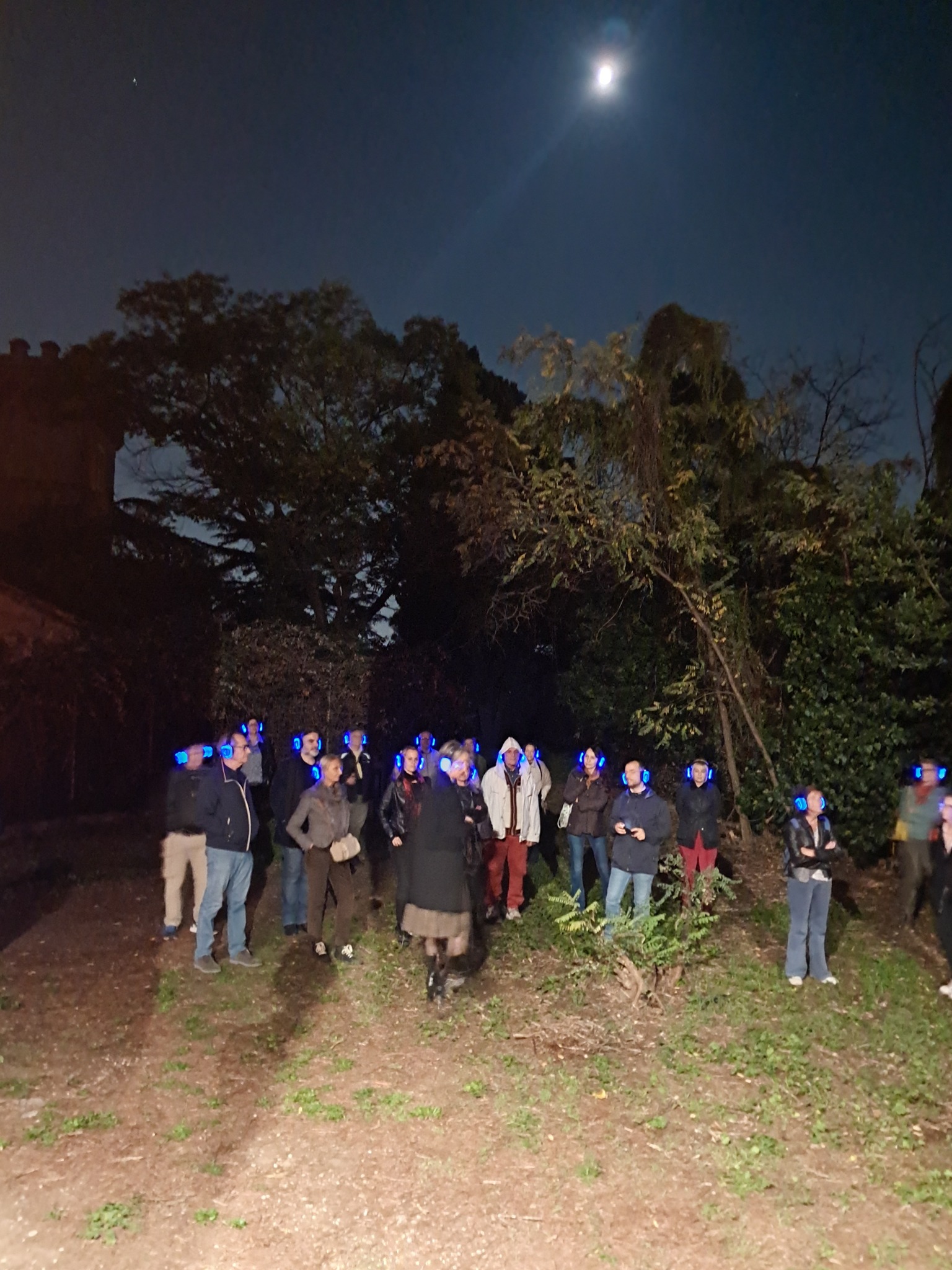 Il giorno dopo Urban Experience è a Villa Flora con un walkabout dal titolo  La rigenerazione umana per la rigenerazione urbana  che anticipa Teatro di Cuocolo-Bosetti. Questa combinazione con un atto teatrale in quel contesto ha un particolare senso perchè lì Abraxa Teatro da anni, accolti dall’Associazione Villa Flora in uno degli ex fienili, programma iniziative teatrali.  È stata una buona occasione per riflettere con le comunità territoriali (tra cui Antonio Aprile dell’ Associazione Amici di Villa Flora, punto fermo di quel territorio e Massimo Grippa di Associazione Villa Flora, Emilio Genazzini e altri amici di Abraxa Teatro), rappresentanti del Municipio XII (la consigliera Flavia Balestrieri e Fabio Bomarsi, Assessore alle Politiche Sociali) e l’Assessore all’Urbanistica di Roma Capitale Maurizio Veloccia (in messaggio vocale visto che un imprevisto dell’ultima ora gli ha impedito di arrivare) sulle sorti dell’ultima villa storica a godere d’interventi strutturali.Il confronto è serrato, partendo dal vecchio campo di bocce in uno spazio che è diventato presidio civico della Villa, arrivare alle Serre ove si riflette sugli interventi rigenerativi per creare coworking e spazi di socialità e infine alla Villa in rovina, già Casa Generalizia dei Servi di Maria. E’ qui che ascoltiamo un frammento del film di Nanni Moretti La Messa è finita in cui la villa era ambientazione di un centro di Igiene Mentale.